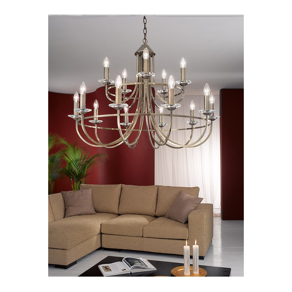 In bronze finish with crystal candle pans