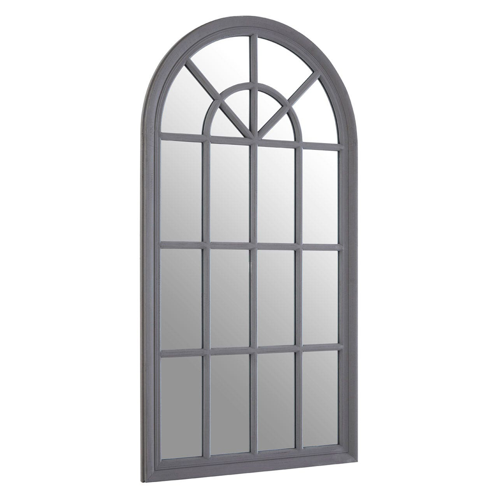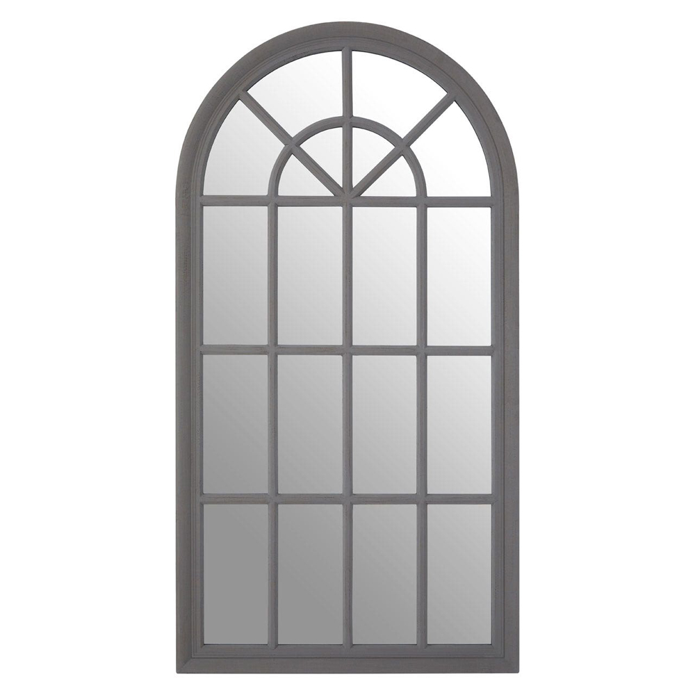 A panelled wall mirror that complements traditional furniture and accessories. The mirror stands on sturdy, renewable wood and the structure of the arc will complement any home decor. This rustic styled mirror will add a strong sense of character to your home decor.